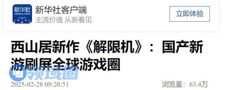 《解限机》二测之火爆,甚至惊动了新华社,2月28日,新华社方面专题专稿报道了此次 “全球风暴”测试,就测试成绩给出了高评价,并称《解限机》为 “2025年全球游戏玩家最期待的游戏作品之一” 。