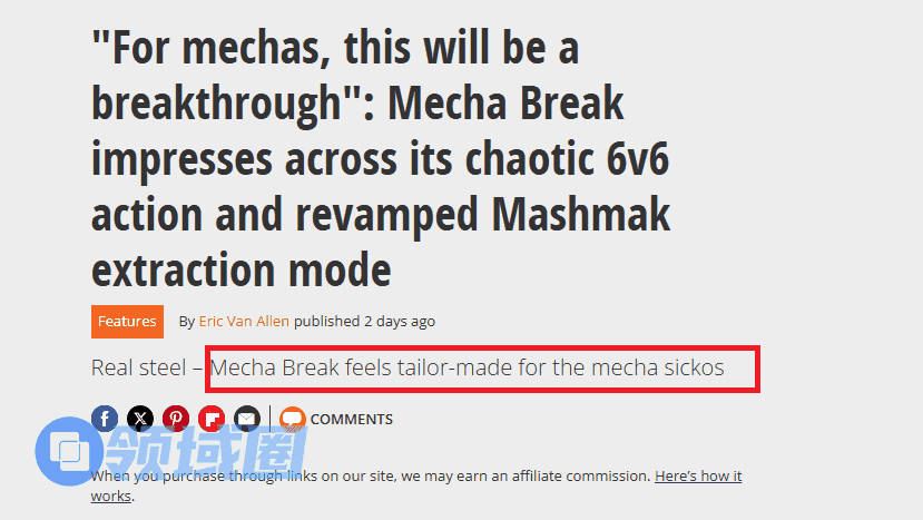 这些媒体的编辑普遍被《解限机》在Steam上飙升的热度吸引,游玩过后就建立起了正向认知。GamesRadar+的编辑不仅在文章摘要里cue了经典机甲作品《铁甲钢拳》,并称《解限机》简直是“专为机甲狂魔量身打造”。