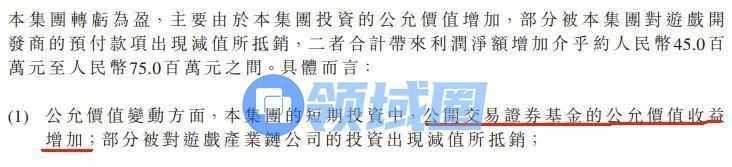 不过青瓷游戏表示,扭亏为盈主要是因为投资组合的公允值变动所带来的。公告披露,由于部分游戏产业股权投资减值以及代理游戏不及预期,对预付款进行计提,投资获益减去减值,依然带来4500~7500万利润。