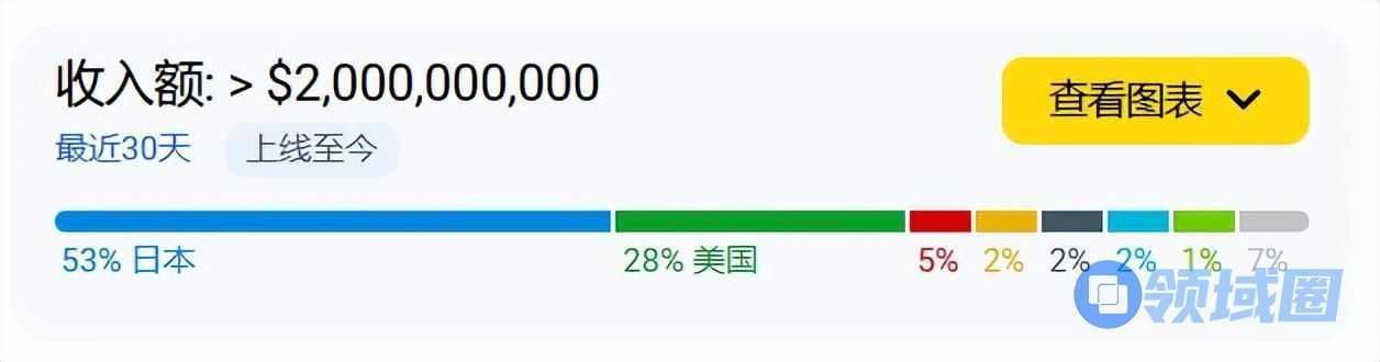 万代南宫梦发行的《Dragon Ball Z: Dokkan Battle》(七龙珠Z 爆裂大战),也凭借在2月的出色表现跻身前十,暴涨至6350万美元。这款游戏在2015年发行,至今仍不时冲进美国畅销榜Top20,各地区贡献收入占比最高为日本(53%),其次为美国(28%)。