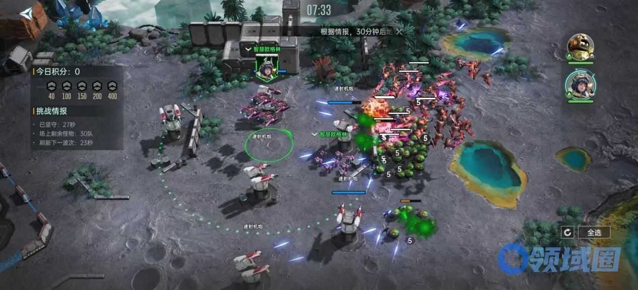 不仅如此,游戏中的机甲单位还加入了种种独特的变型能力,如“飓风战甲”可以切换地面与空中两种形态,前者综合输出能力更强,而后者则能够迅速跨越地形,并拥有强大的对空作战能力;而“泰坦守卫”则拥有长射程,高输出的默认模式与短射程高防御的“防御形态”两种模式。玩家可以在战斗中随时灵活切换形态,合理安排残血与健康单位的射程,达成最大化利用兵种战斗力的结果。