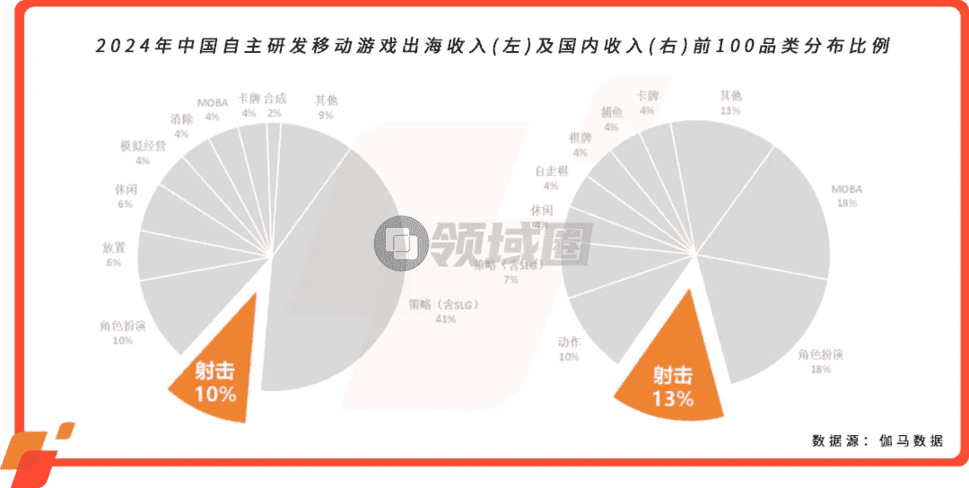从中国游戏厂商视角来看,作为横跨国内与出海双赛道稳居前三的品类,射击游戏在移动端正展现“内外双爆点”潜力:国内以13.89%的营收占比稳居前三,网易《萤火突击》也在去年通过多次大爆联名直播为射击游戏的创意联动形式做出榜样;而海外市场则在SLG霸权下以10.4%占比撕开缺口。这种“本土做玩法实验田,海外做增量突破口”的协同打法,不仅凸显射击品类在成熟市场的迭代韧性,更预示其或将成为继SLG之后中国游戏厂商全球化的新支点。