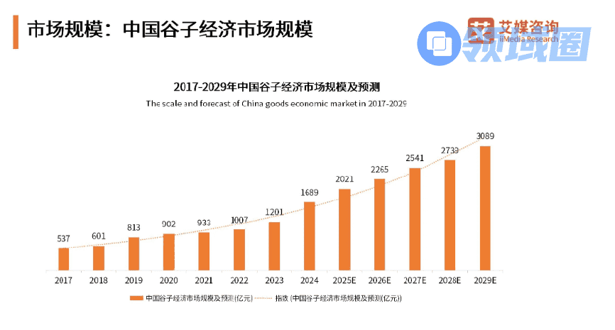 爱与经济交融的这把收入算盘,赚得噼啪作响。据艾媒咨询数据显示,2024年,中国谷子经济市场规模达到1689亿元,同比增长40.62%。到2029年,这个数字将突破3000亿元。