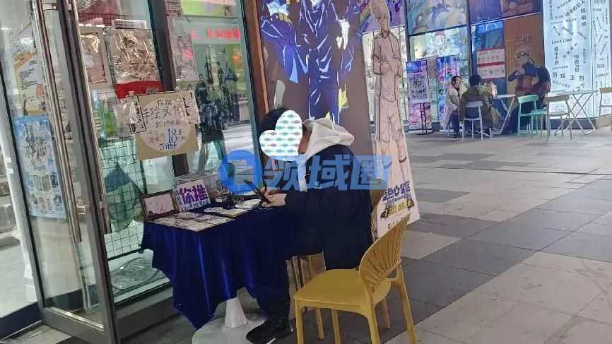 与谷子店合作的画师JAY菌,有时趁着天气好,会在周末两天都赶赴门口的小摊位——5分钟,你推手绘头像现场作画。当天气不好,他便只去周六,“周六学生和上班族都会在,周天人流量会低很多”。