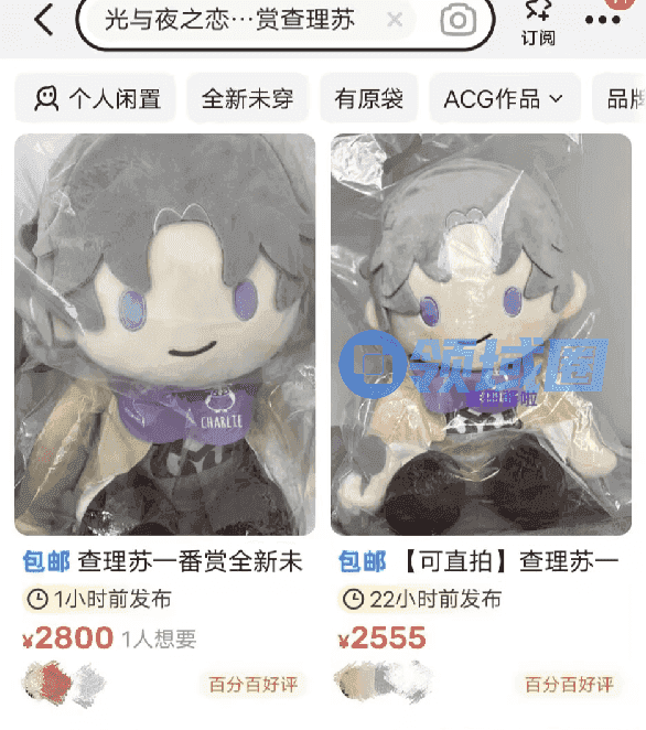 溢价/黄牛问题与官谷如影随形,还总会给玩家带来一丝焦虑。在吃谷生涯中,卡皮记忆中最难抢的周边是2022年《光与夜之恋》首次发售的一番赏。其它三名热门角色的套装价约500元,而当时的热门角色查理苏套装已涨至近1000元。卡皮想过在发售前夜排收一整箱再卖。焦虑好几天,最终在闲鱼用真诚打动一名姐妹,以500元拿下心仪周边,但并非套装,仅包含一个娃娃。