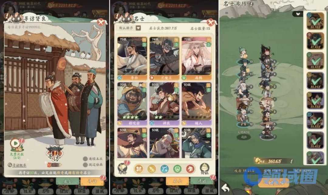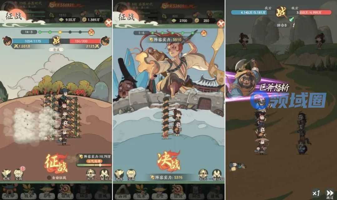 军事部分则以征战关卡为主,由军队征战和主将决战两个部分组成,征战主要以“军力消耗”分输赢,决战部分则以“名士回合制对抗”的形式呈现。