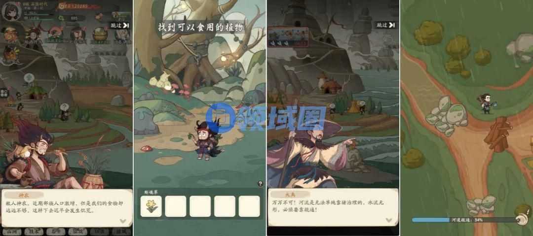 游戏早期阶段,部分名士现身的时候,就会出现一个与人物典故相对应的小游戏。比如“神农尝百草”,神农将通过“试毒”的方式,帮助玩家从一众植物中找到适合大规模种植食用的作物。再比如“大禹治水”,玩家需要找到正确的方式疏通河道,防止水患对居民造成影响。
