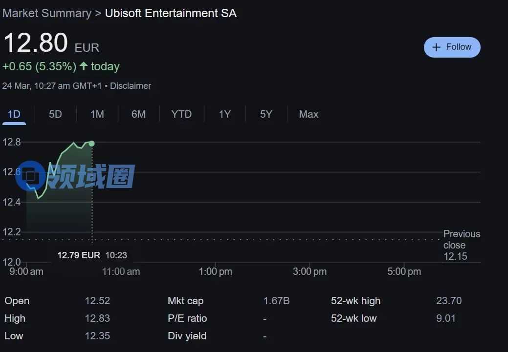 值得注意的是,随着《刺客信条:影》的发售,原先摇摇欲坠的育碧终于开始稳定下来。昨日,育碧的股价上涨5.35%,实现了难得的回升。