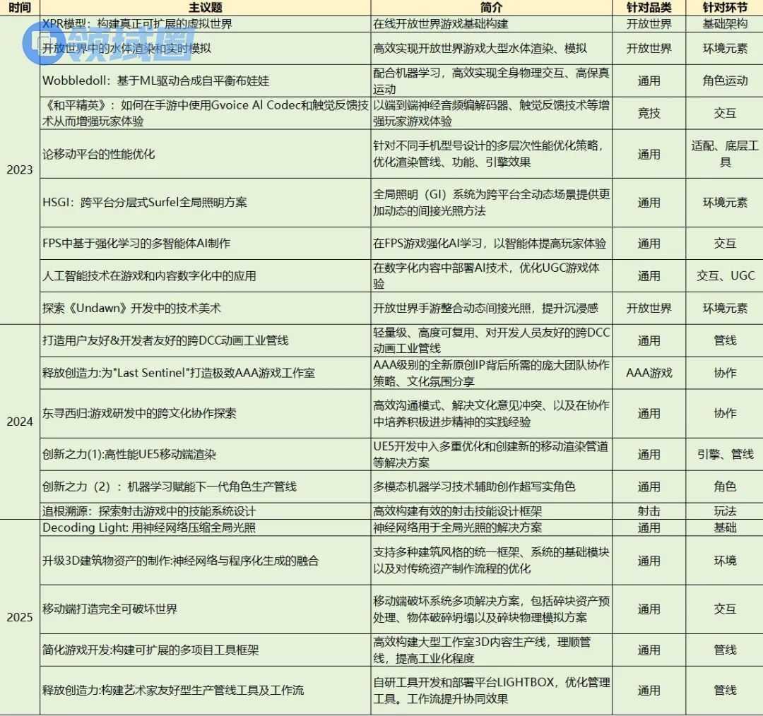 从2023至2025,光子已经在三届GDC上分享了超过20个研发议题,覆盖多个行业风口品类和研发环节。