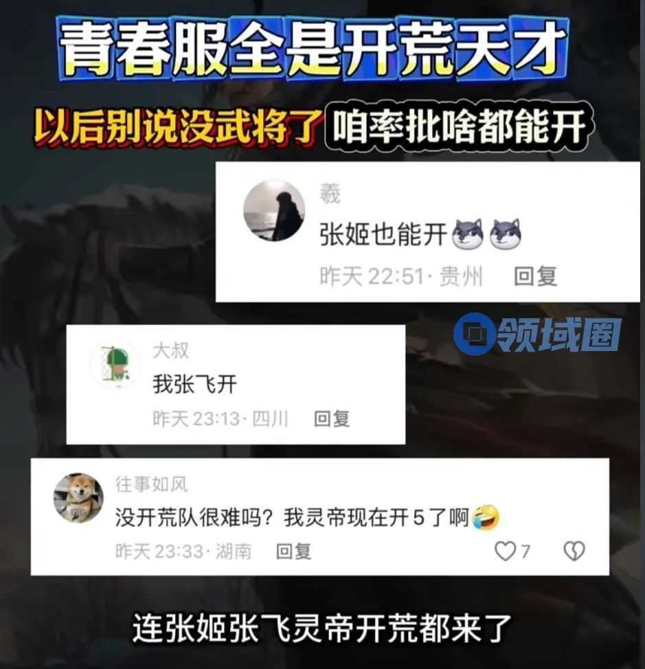 另外,由于铜钱资源有限,大家抽取到的初始武将也五花八门,这就让开荒一改平时“一套阵容走天下”的景象,变成八仙过海、各显神通,玩家们会研究出更多的可选开荒组合。在抖音等社区平台的攻略上,已经可以看到玩家们分享各自发现的“开荒黑科技”阵容,策略感拉满。