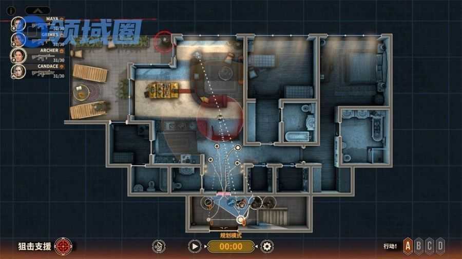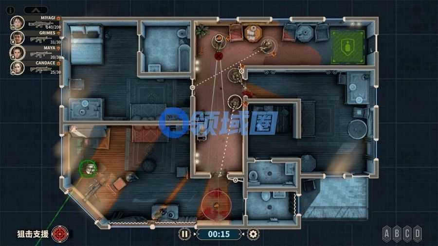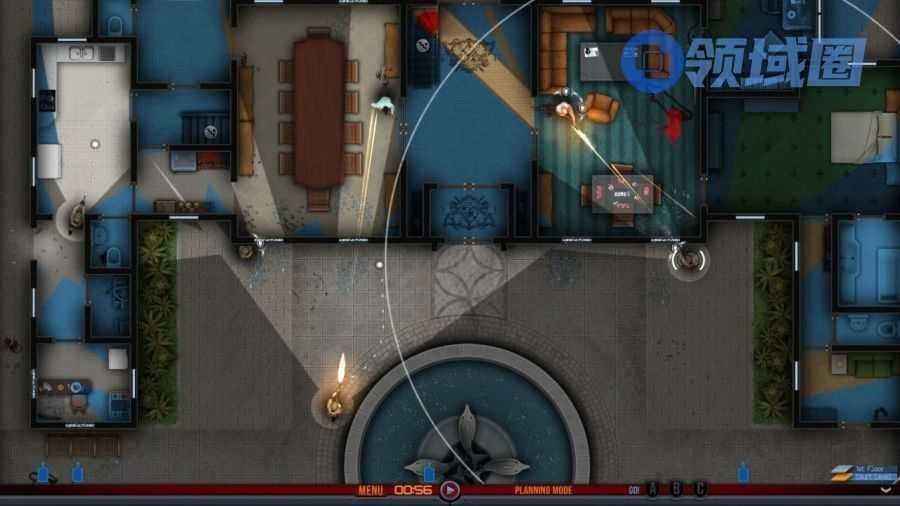 这是因为该作和市面上常见的CQB游戏采用即时战斗和第一人称视角有很大不同,一个是这款游戏采用了俯视角,使得玩家可以更好的观察全局,另一方面游戏虽然是实时玩法,但是在游戏进行过程中玩家可以随时暂停,令玩家可以在紧张的战斗中仔细思考、反复规划,同时仍能感受紧张的战斗氛围。