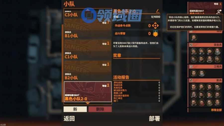 本作中每个小队每个士兵都可以单独强化,玩家操控其击杀的敌人越多,其等级就越高。并且随着任务的完成,还支持装备更换。适用于暗杀的消音装备;可以在巷战中发挥优势的手枪;独特的辅助道具。小队的整体等级也会随着战斗的次数获得全新的作战命令。