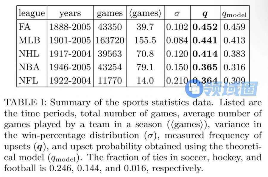 2006年,美国Los Alamos国家实验室的三位统计学家分析了1888-2005年间英格兰足球的43350场足球比赛,1901-2005年间MLB的163720场棒球比赛,1917-2004年间NHL的39563场冰球比赛,1946-2005年间NBA的43252场篮球比赛,1922-2004年间NFL的11770场美式橄榄球比赛。最终得出结论:足球的冷门概率最高,为45%;棒球44%,冰球41%,篮球36%,橄榄球36%