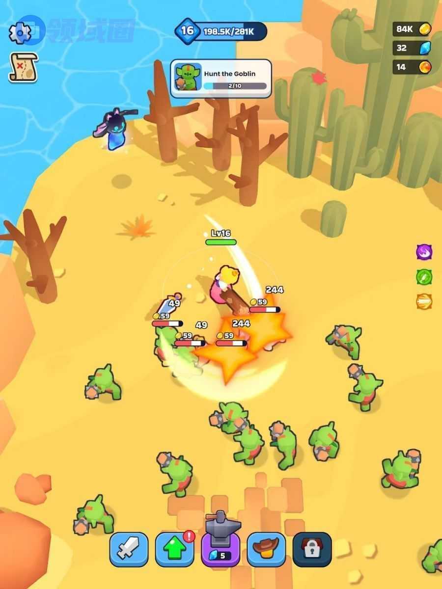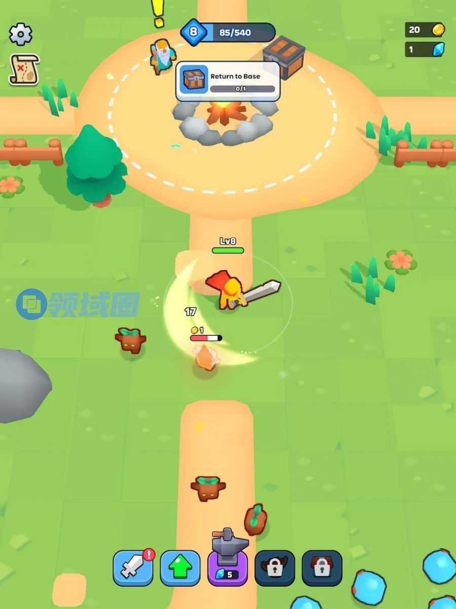 介绍:来自Idle Arcade大厂Supercent,出品过爆款《Burger Please》等。舒适区作品,HyperRPG类型,玩家控制角色在地图上打怪升级、得金币、宝石建造基地,提升属性,打造各种品质装备,然后继续升级打怪,很成熟稳定的HyperRPG架构,特点是在其基础上加了个《疯狂骑士团》like的开宝箱系统,打造装备的品质是随着打造等级随机刷的,玩家需要经常刷装备。