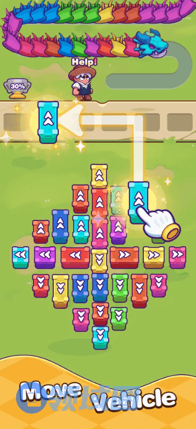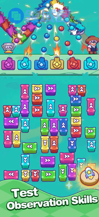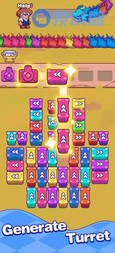 介绍:国内公司出品,可以整体理解为《Bus Jam》的换皮,把汽车换成了炮台,把乘客换成了一截截boss的身体,用对应的炮台炮弹消除对应的颜色身体。