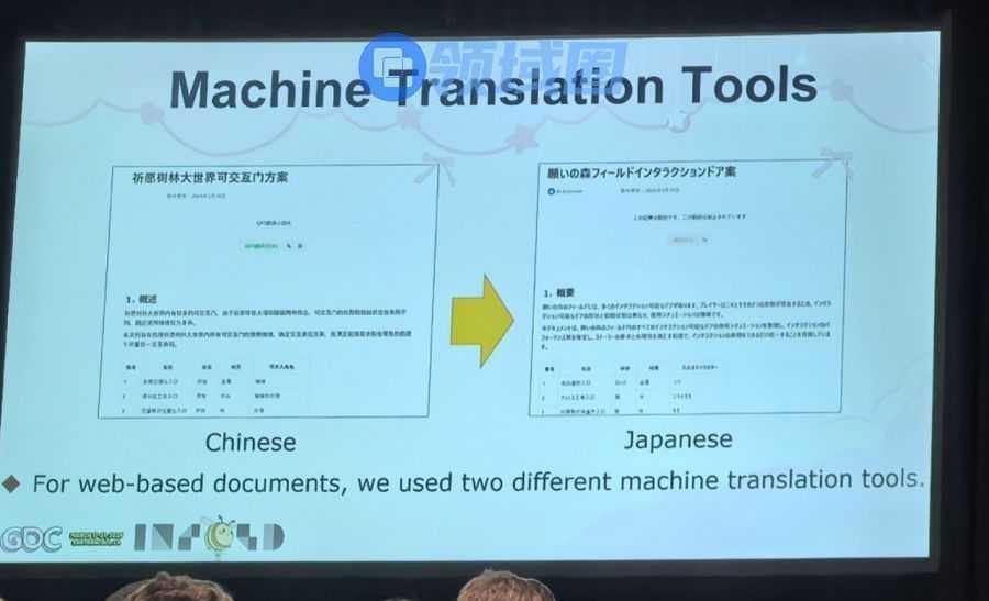 首先是“翻译”。鉴于语言障碍,高效的翻译沟通是成功的关键。他们在项目中大量使用了机器翻译,主要是飞书(Lark)。飞书界面的顶部是中文输入,下方是自动翻译的日文内容,这样双方就可以用母语输入信息,并顺利地进行简单交流。