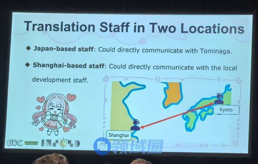 显然,翻译团队需要具备双语能力,最好还能有游戏开发经验。这样的人才当然也难找,因此,团队招聘了一些热爱游戏但没有游戏开发经验的人作为翻译。这些人中具备编程或DCC工具的专业知识,虽说从未参与过游戏开发,但从翻译文档开始,也逐步承担更复杂的任务,例如会议翻译。而翻译团队成员分别驻扎在日本和上海,可以随冨永健太郎在两地灵活安排,面对面沟通更高效!