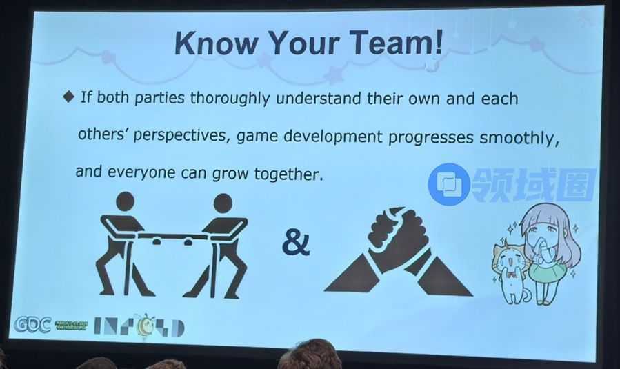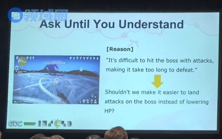 冨永健太郎在现场引用了“知己知彼,百战不殆?”《孙子兵法》中的一句著名谚语,他认为,【如果你了解敌人和自己,你就不会失败】这一原则同样适用于游戏开发,【如果所有项目成员都能充分理解彼此的观点,开发将顺利进行,大家也能共同进步】。