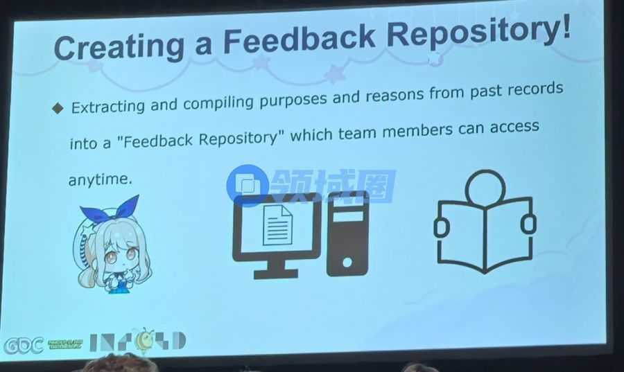 通过反复的沟通,团队也在项目中逐渐积累了大量的知识。由于语言障碍而创建文档来解释设计规范,所以团队积累的大量知识以文本形式为主。冨永健太郎对应地从过去的反馈中提取目标和原因,进行分类整理,创建了一个“反馈库”,以便关卡设计师可以随时查阅。而这项工作即便是游戏已发布的当下,也仍在进行中,“只要游戏仍在运营,就会有更多的见解继续积累”。