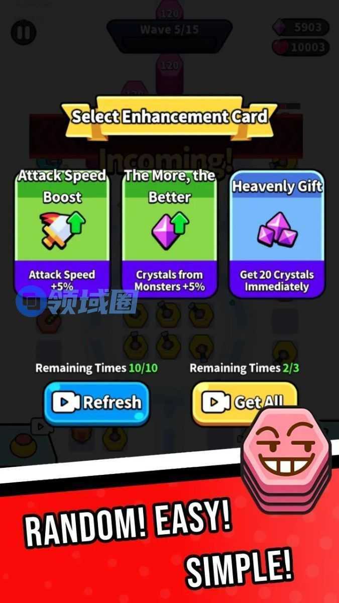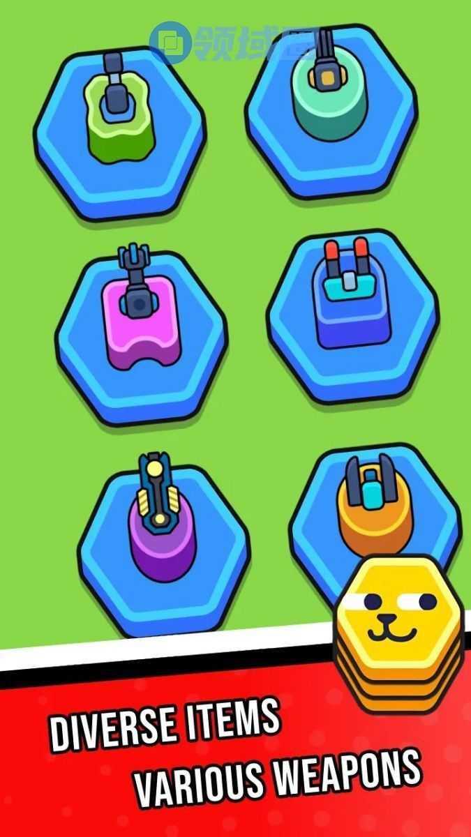 介绍:猜测是国内公司做的。放置各种炮台抵御敌人,炮台有各种类型和对应攻击模式、攻击范围等,每波敌人击败后可以3选1buff,极简的肉鸽系统。另外关卡中可以破坏一些地图内道具用来增加炮台摆放空位,也可以在战斗中随时拖动炮台。敌人则用hexa堆叠的形式表现,挺好理解的。