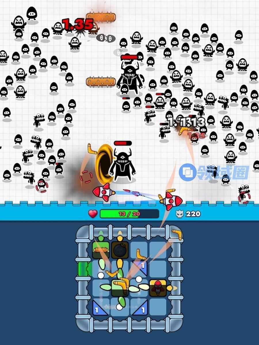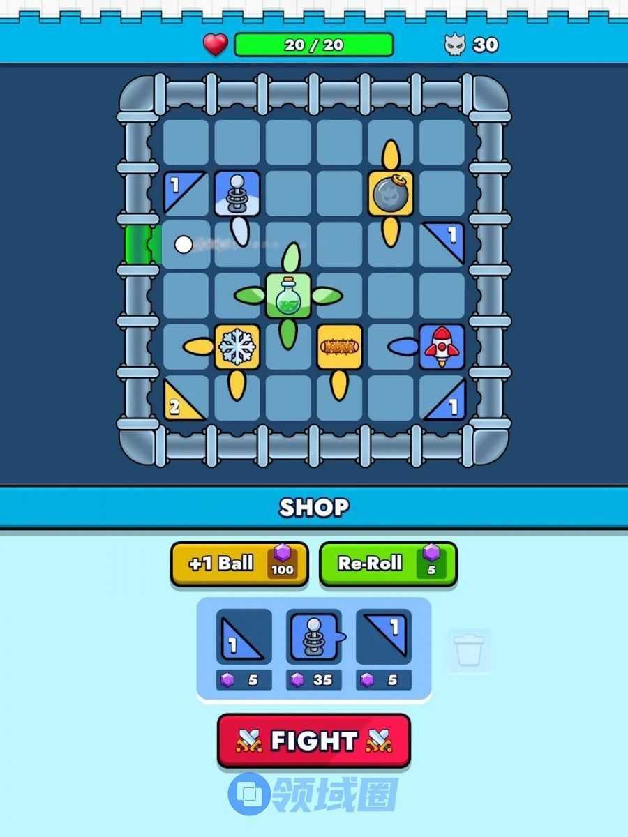 介绍:下方吐出小球,可以放置各种防守炮台、障碍用来抵御敌人,当小球触发炮台、障碍的“开关”的时候可以释放攻击,然后可以放置反射弹板,用来规划小球反射路线,多个相同炮台、弹板可以升级,尽可能让小球在一定时间内尽可能多、尽可能快速的触发更多防守炮台的策略玩法。