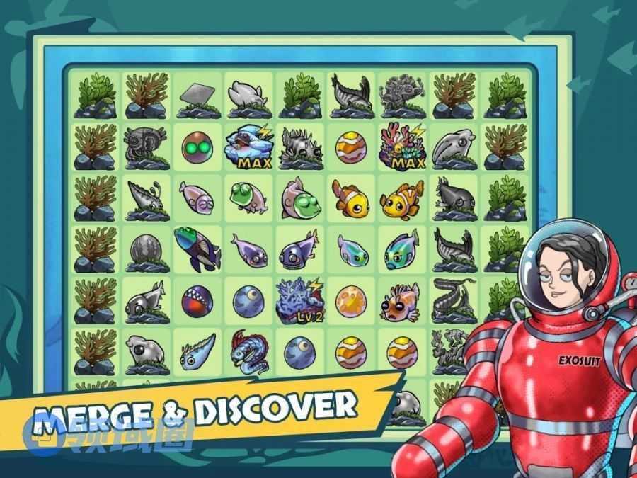 介绍:玩法本身并不是特别新鲜,是二合merge,不过题材上采用了潜艇探索各种鱼类的包装,人物角色画风有点family guy的即视感,整体感觉玩法和美术搭配起来比较新鲜。