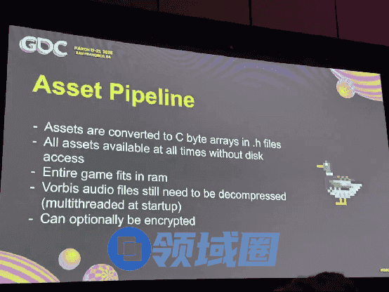 这些做法不仅有效地减少了游戏占用的空间,还可以实现加密功能,防止数据被挖掘。巴索甚至使用硬件支持的AES对游戏资源进行加密,并将谜题的解谜方案用作游戏内的解密密匙,从而使玩家寻找各种隐藏内容、彩蛋的过程变得更加有趣。