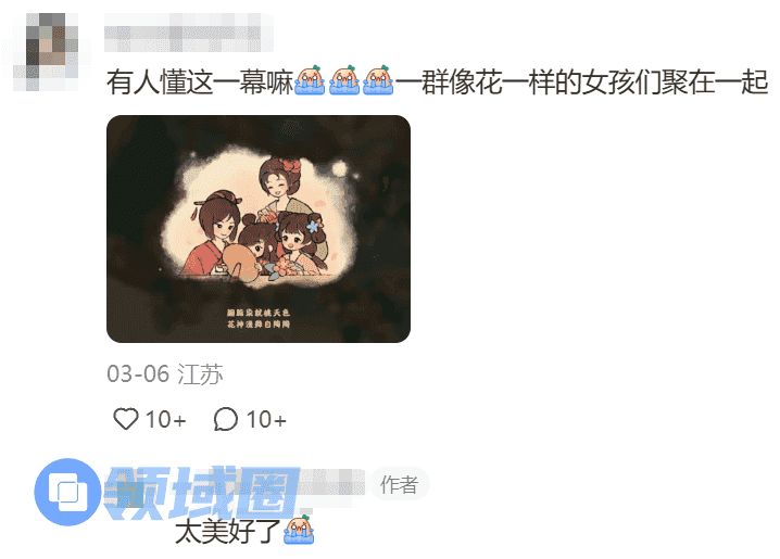 无数个画面成为不少女性玩家泪目、截屏的幸福瞬间:一群像花一样的女孩们聚在一起,太美好了;原来,每个女性在《桃源》是什么样,花神就是什么样。