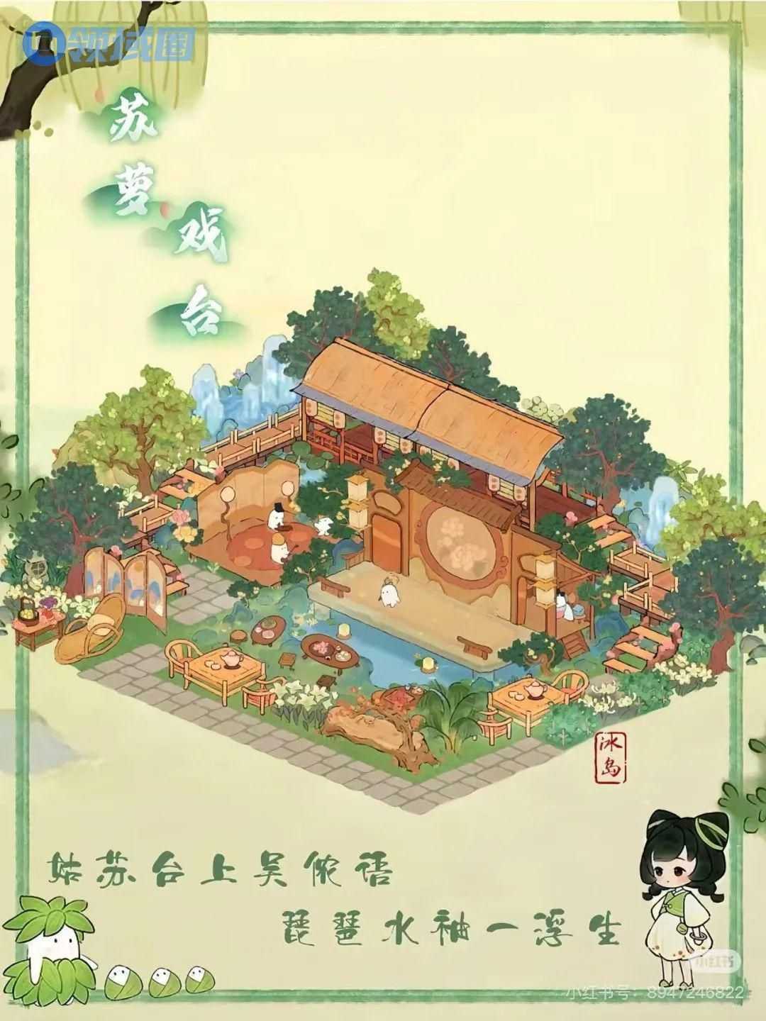 比如在2023年的上线之初,《桃源》便推出了传播苏州戏曲文化“曲忆姑苏”的活动。玩家通过点击和升级“苏萝戏台”建筑,就会有萝卜山灵站在舞台演唱昆曲《西厢记》和苏州评弹《无锡景》。独乐乐不如众乐乐,摆上建筑,玩家既可自赏,还可邀请朋友一同倾听。