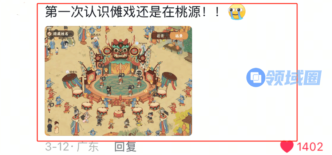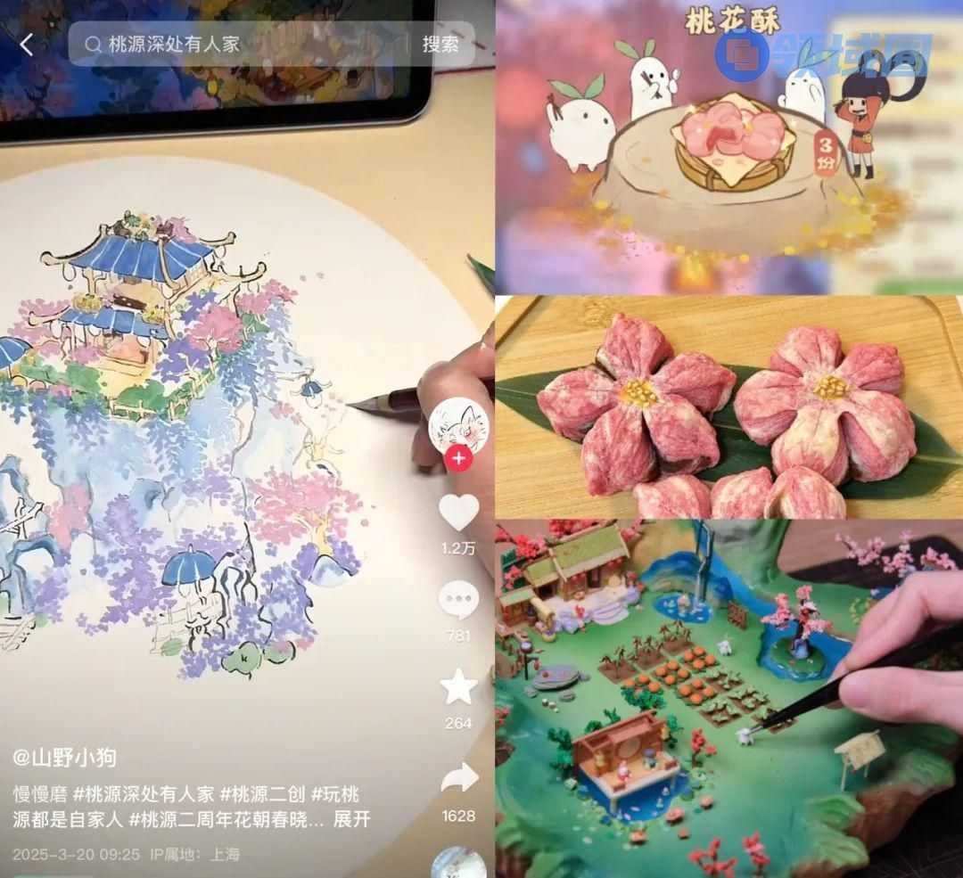 一方面,在游戏外,玩家愿意创造丰富的二创内容向更多人分享——有玩家在关掉游戏后,用一双巧手复刻游戏里的“桃花酥”,也有玩家用水墨画笔还原出了游戏中的精美建筑,甚至有玩家用粘土制作出整个“桃源”。