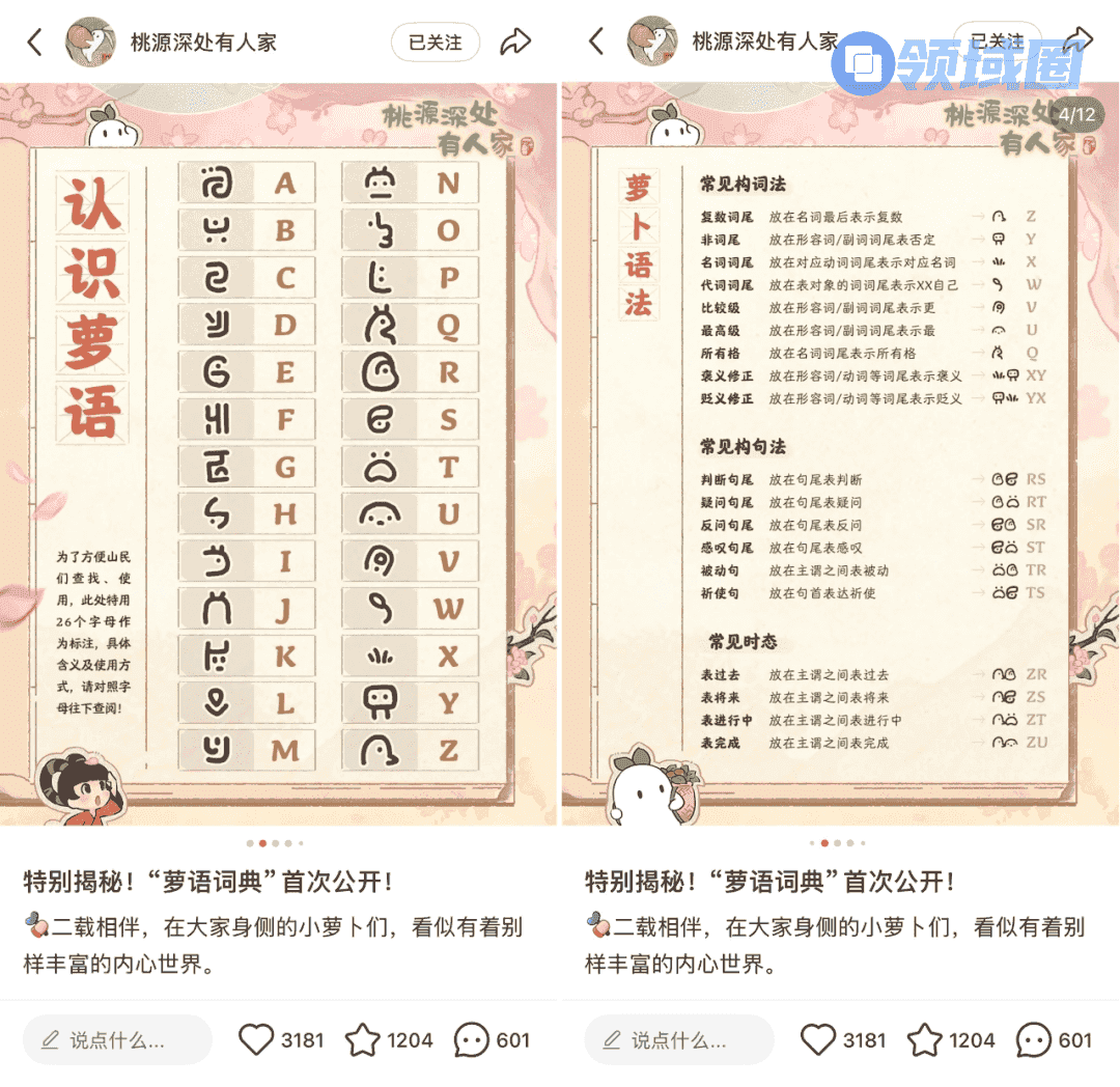 时间匆匆过去。从最初的“萝萝山”小小天地出发,经过两年摸索,为了增加游戏体验,《桃源》不停丰富玩法和细节,不仅拥有了平凡生活的三餐四季,还拥有了猫、鸟与鱼。甚至就在昨日,官方还首次公开了关于萝卜山灵语言的“萝语词典”,让玩家感慨“坏了,这个我真想学”,“你们甚至创造了一种语言,有这个毅力做什么都会成功的”。