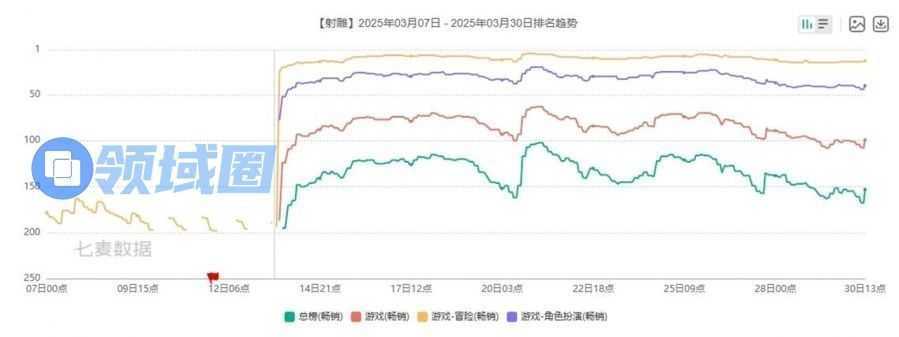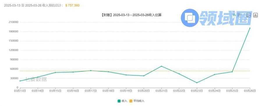 如此阔绰,是他们不想盈利吗?非也,唯有让玩家利益得到保障,游戏才有长线发展的可能。据七麦数据显示,3月13日——3月26日,《射雕》2.0版本iOS平台预估收入已达到约550万元人民币($757,560),尚有其他收入不在监测范围内以及未包含平台分成。从流水趋势来看,《射雕》2.0版本上线半个月仍处于发力期,这一数据反映了游戏在初期上线阶段,获得了市场的正向反响,被玩家所接纳。考虑到游戏品质与吸引力、网易的品牌影响力、市场推广策略等综合因素,《射雕》的后劲值得期待。