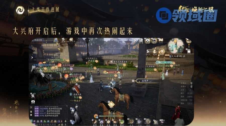 3月28日的直播汇报,也提到了该点,玩家的涌入让《射雕》的烟火江湖再次沸腾,全新地图大兴府游人如织,帮会联赛如火如荼,吃鸡等PVP玩法更是成了游戏里的热闹去处。