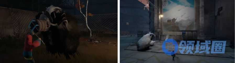 而在躲过危险后,有一个休息的间隙可以让玩家紧绷的神经得以舒缓。每个一段时间,Via就会找到一个可供她和动物群休息的地方,此时Via可以给动物们擦拭伤口、清洁毛发,或者互动玩一些小游戏,整顿好后温暖的篝火总是让人感觉舒适。
