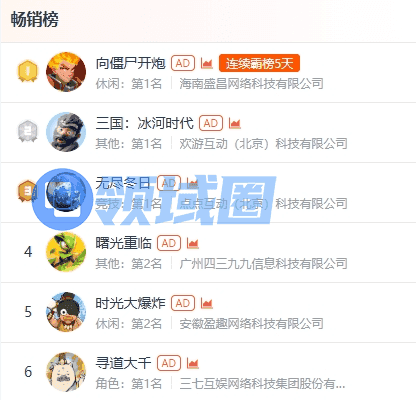 这就意味着两款3月上线的新产品用了极短的时间就冲到畅销榜前列,也让微信小游戏头部阵营发生巨变。截至3月28日,微信小游戏畅销榜TOP5分别是,《向僵尸开炮》《三国:冰河时代》《无尽冬日》以及《曙光重临》和《时光大爆炸》。