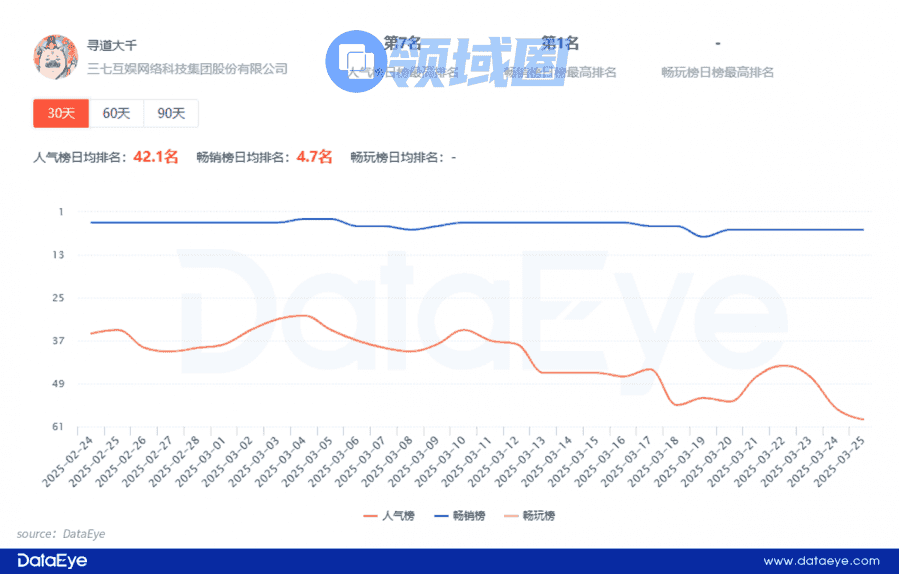 不过《寻道大千》多年以来所累积起庞大的用户群体,也能保障产品可以持续活跃在畅销榜之内,只是难以回到TOP3阵营。