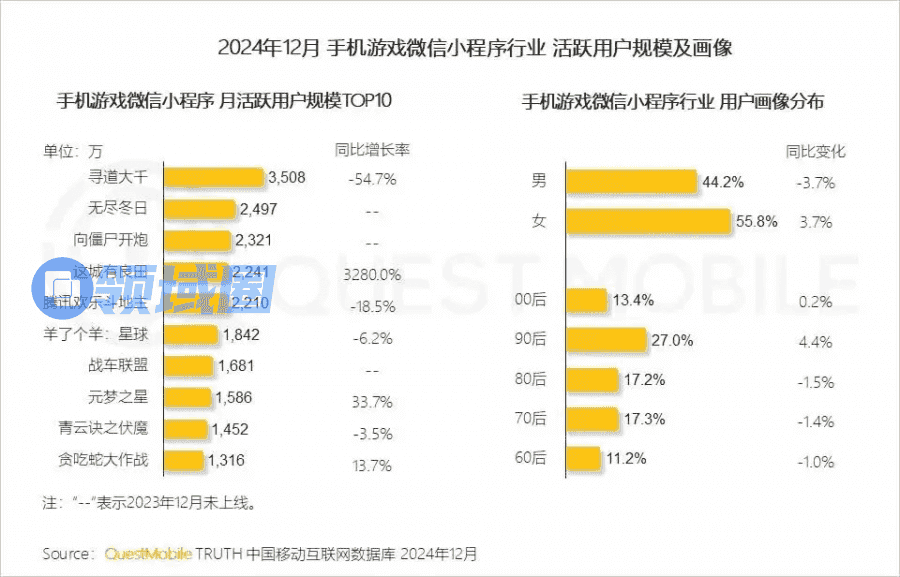 在去年12月QuestMobile数据显示,《寻道大千》去年12月预估MAU月活跃用户量跌至3508万,同比下滑54.7%。