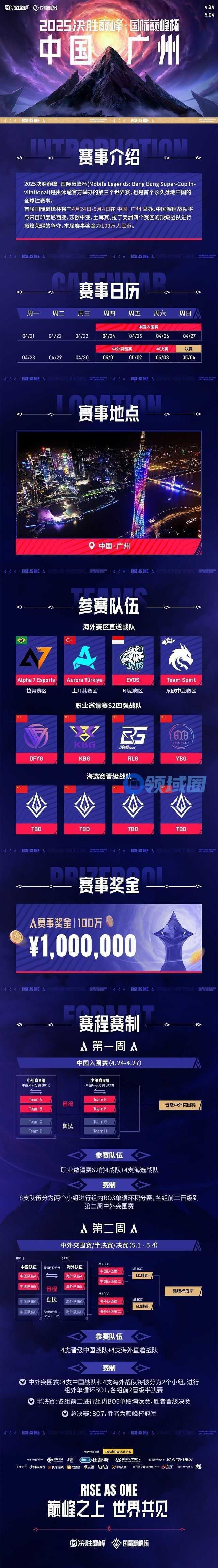 赛程赛制方面,赛事第一周(4月24日-4月27日)为中国入围赛。参赛队伍包括职业邀请赛第二赛季前4强战队与4支海选战队,共8支队伍。他们将被分为小组赛 A 组和小组赛 B 组,进行组内BO3单循环积分赛。每组前二将晋级到第二周的中外突围赛。第二周(5月1日-5月4日)涵盖中外突围赛、半决赛与决赛。中外突围赛阶段,晋级的中国队伍与海外队伍分组进行单循环 BO1比赛。之后的半决赛,采用BO5单败淘汰赛制,各小组前二晋级,胜者向决赛迈进。决赛则是BO7的巅峰对决,最终决出“2025决胜巅峰·国际巅峰杯”的冠军 。