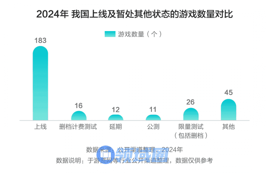 据公开渠道整理,2024年1——11月,我国共有180余款App游戏正式上线运营,相较过审游戏数量来看占比仅为10%左右。同时,更多新游选择延长测试周期,部分高投入产品多选择延期以待后续上线。