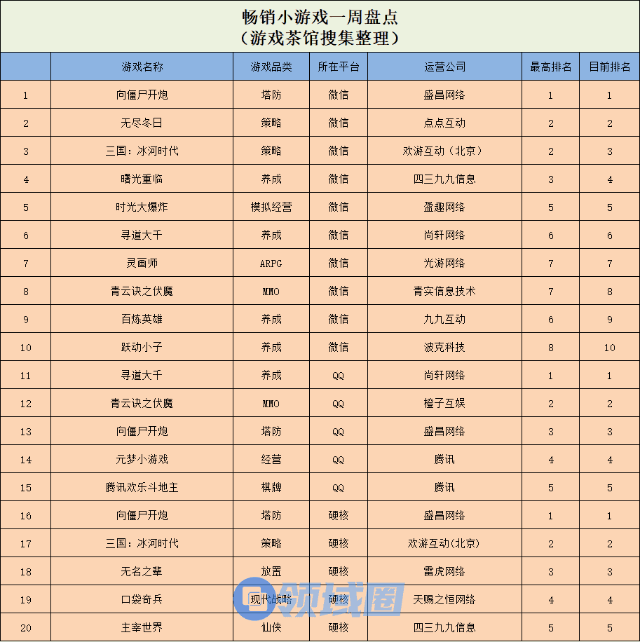 畅销小游戏:《向僵尸开炮》全平台热玩,《曙光重临》稳坐TOP5
