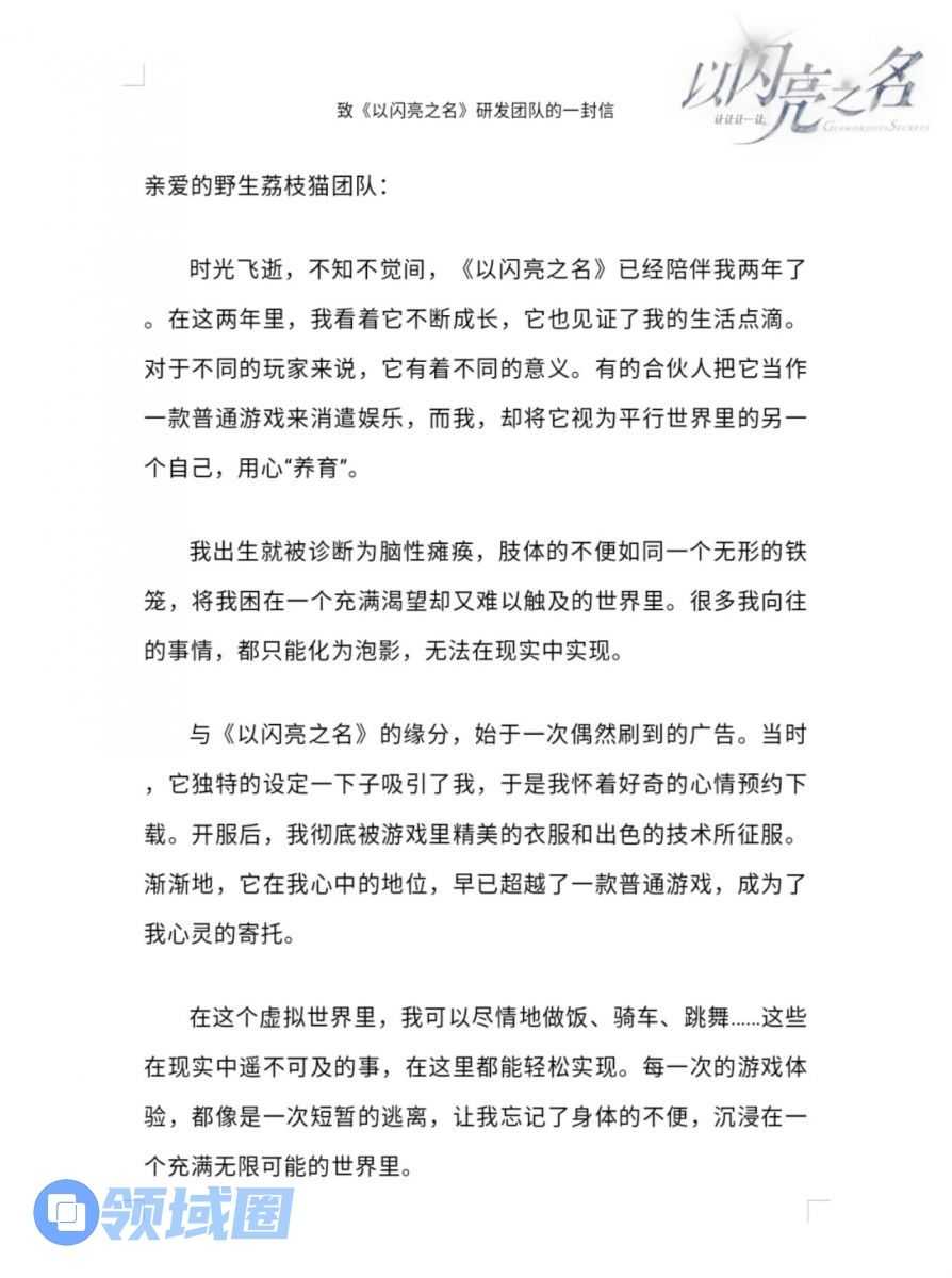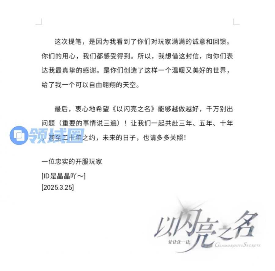 作为一款女性向游戏,以闪到底能承载多少?或许从以闪玩家写给官方的这封信能略知一二。