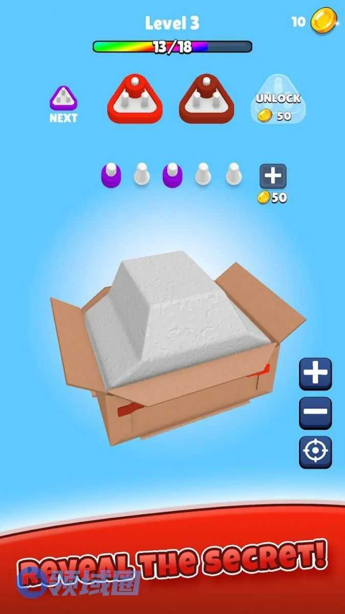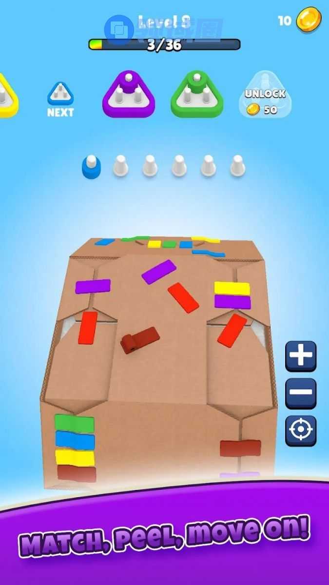 介绍:另一种程度上的“拧螺丝”,不过是把螺丝换成了一个个彩色胶带,贴在快递盒子的各个边角,玩家需要拆同色胶带凑三个消除,直到把所有胶带拆完,漏出里面的泡沫,以及打开看到最终盒子里装的是什么东西。