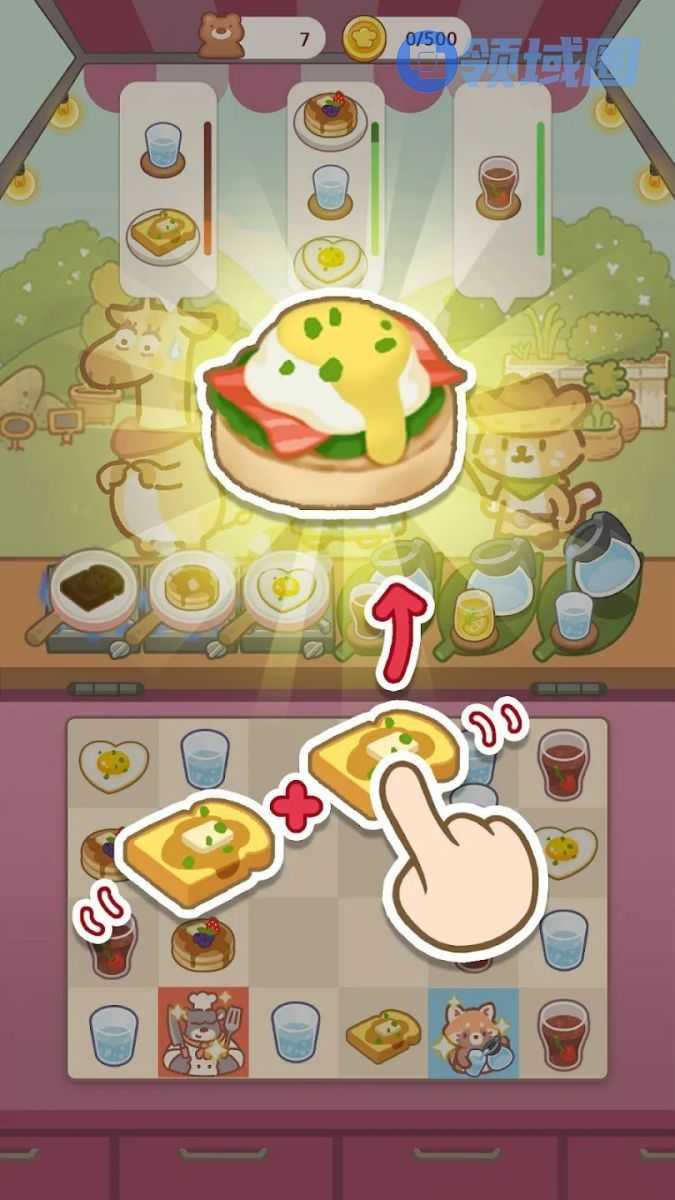 介绍:玩家经营餐厅,根据顾客订单,准备各种菜品,菜品由食材二合+放在烹饪厨具中制作完成,然后玩家点击提供给顾客;画风是一种治愈卡通的2D萌系画风,玩法是二合+时间管理的形式,整体玩起来还是挺有意思的。