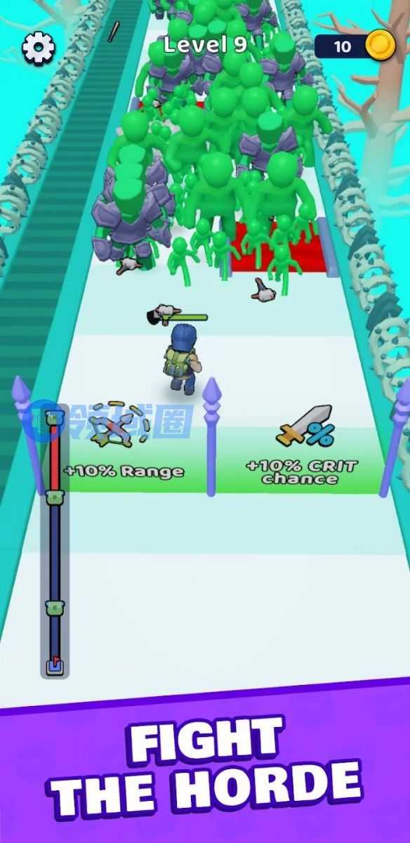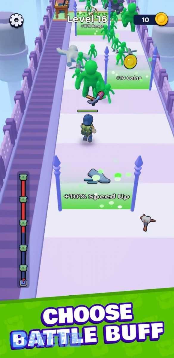 介绍:挺有意思的融合,把背包like的部分和超休闲游戏中常见的过门跑步表现做了个融合,游戏做成玩家角色一路后退着跑钻门,一路用背包的机制抵御上方来袭的各种敌人,倒着跑过门的玩法跟背包融合的很好。
