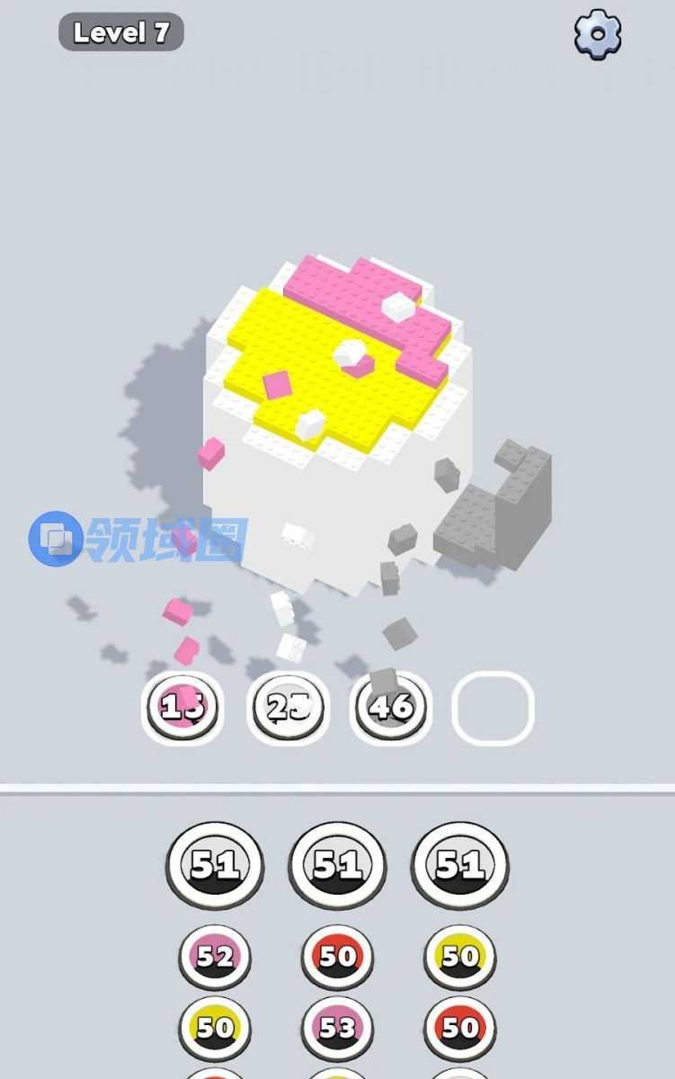 介绍:解压像素块消除玩法,每一关是由各个颜色积木块拼成的模型,玩家选择各色“黑洞”,在有限的Block线之下,消除模型中的各个颜色积木即为胜利。