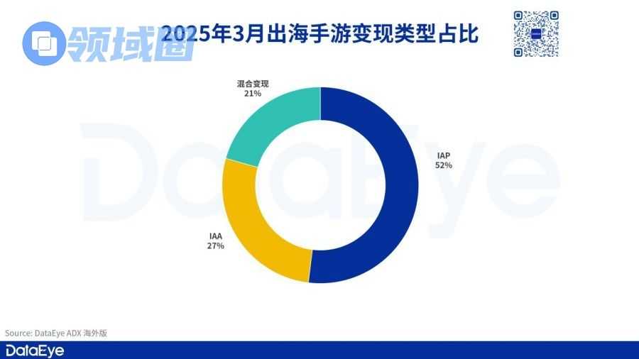 在3月份的出海手游变现类型的占比上,则与上个月相对保持一致。混合变现产品数量占比21%,纯IAP产品则依然有着超52%的主要占比,IAA产品的占比为27%。