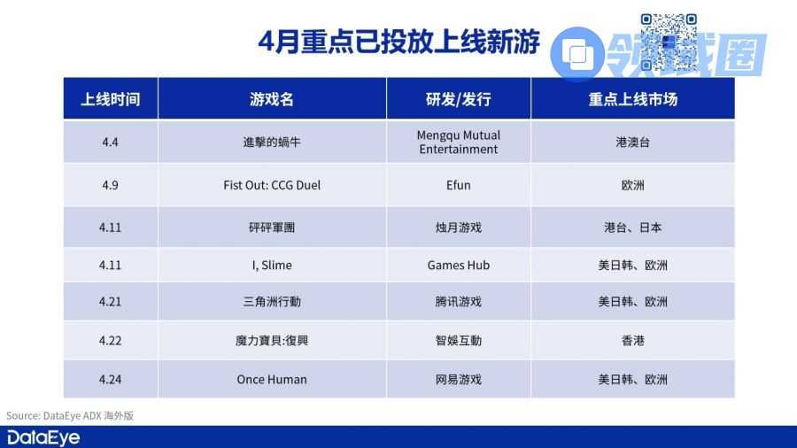 腾讯的射击大作《三角洲行动》将上线美日韩和欧洲大部分市场,而网易游戏的夸端生存游戏《Once Human》也将登陆全球大部分主要市场,这两款产品均是来自两家巨头公司久违的大制作,表现令人期待。
