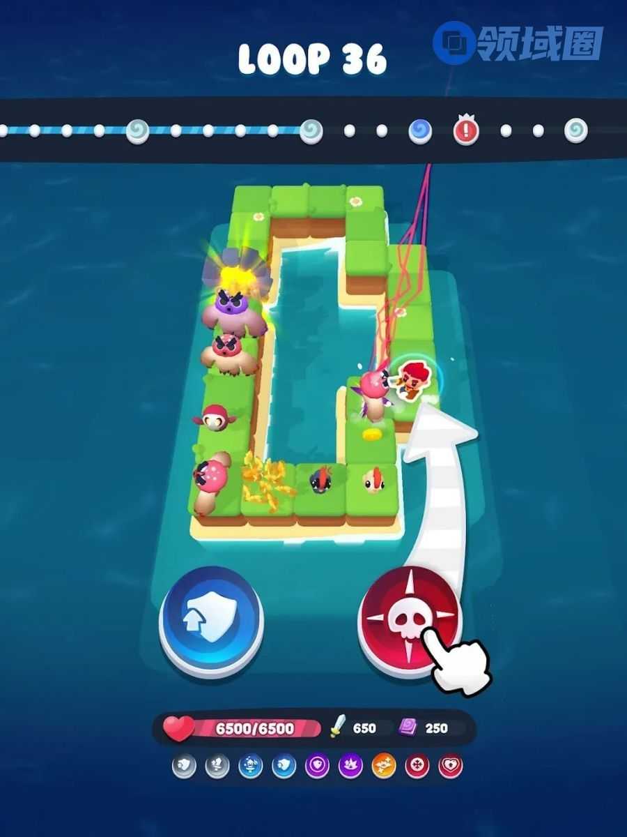 画面玩家扮演勇者向前探索砍怪,并在过程中随机遇到怪物、BUFF等选择,不过这次探索的表现是在一个地图上走格子,并最终把格子收尾相连,走出一个《Loophero》的地图表现出来,完成得还行,主要是这俩框架其实很搭:循环、肉鸽、RPG……调性重合度很高。