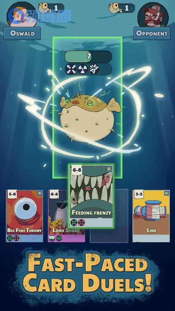 介绍:挺有脑洞的创意新游,把钓鱼做成了卡牌对战的玩法,玩家和对手配置自己的卡组,然后遇到各种鱼,根据不同鱼的血量、特性、能力、大小,打出自己的卡牌,看谁先能捕到鱼,然后带回自己的水族箱中收藏(战斗胜利)。把钓鱼这个题材用非常不钓鱼的玩法做了创新,让人眼前一黑。不过挺有意思的哈,分享给朋友们。