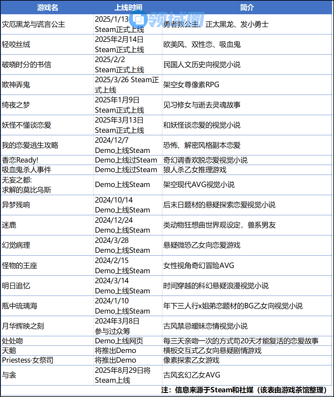 没有大厂出新乙游的2025年,“独立乙游”扎堆上线Steam。